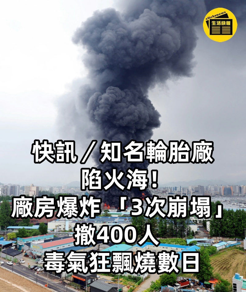 快訊/知名輪胎廠陷火海!廠房爆炸 「3次崩塌」撤400人 毒氣狂飄燒數日