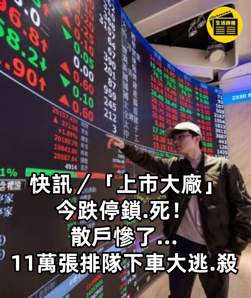 快訊/「上市大廠」今跌停鎖.死!散戶慘了... 11萬張排隊下車大逃.殺