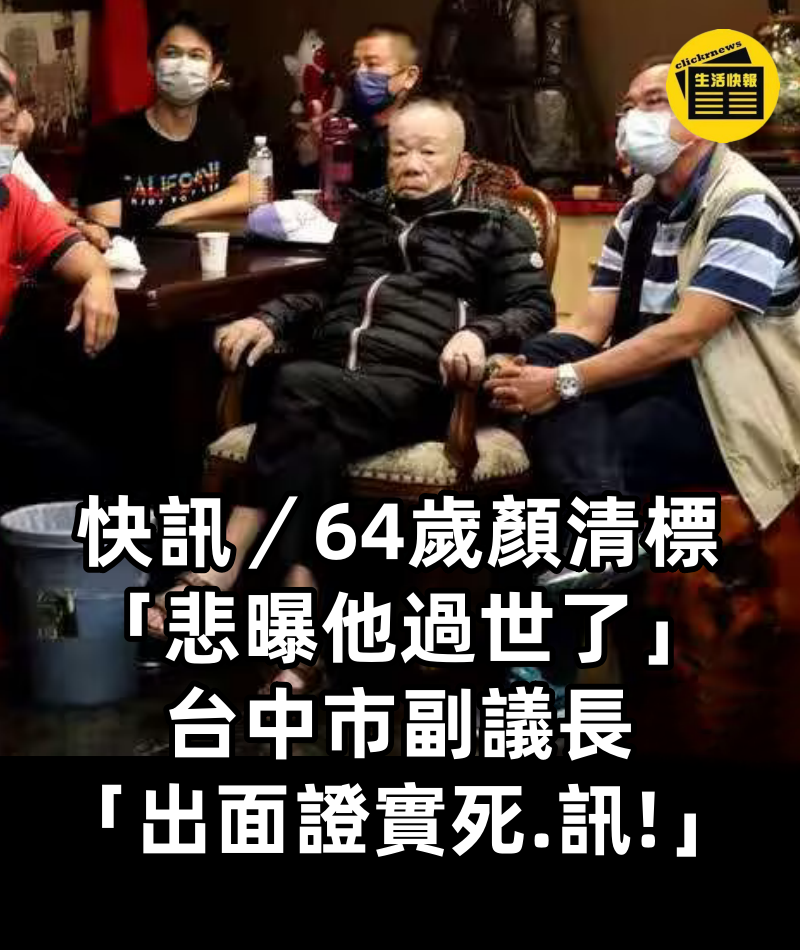 1/3 快訊/64歲顏清標「悲曝他過世了」!台中市副議長「出面證實死訊!」 根據《ETtoday新聞雲》報導,台中市大甲鎮瀾宮董事長顏清標的父親顏懷仙逝,享年94歲。 消息傳出後,各界表達關切與哀悼之意。 2/3 台中市副