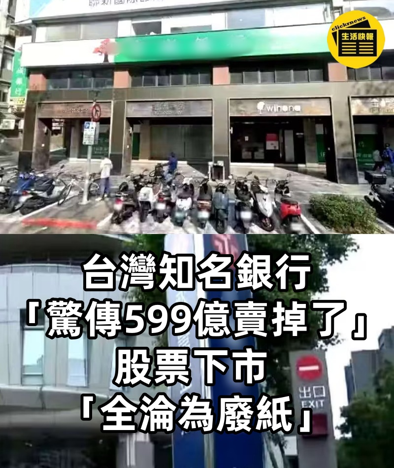 台灣知名銀行「驚傳599億賣掉了」!股票下市 「全淪為廢紙」