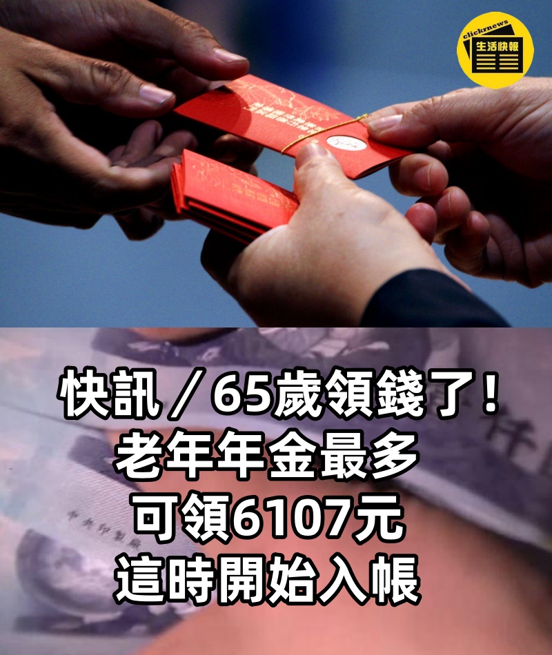 快訊/65歲領錢了! 老年年金最多可領6107元,這時開始入帳