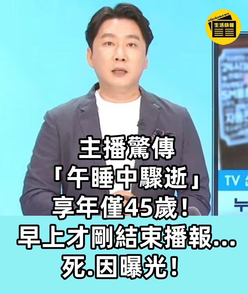 主播驚傳「午睡中驟逝」享年僅45歲! 早上才剛結束播報…死.因曝光