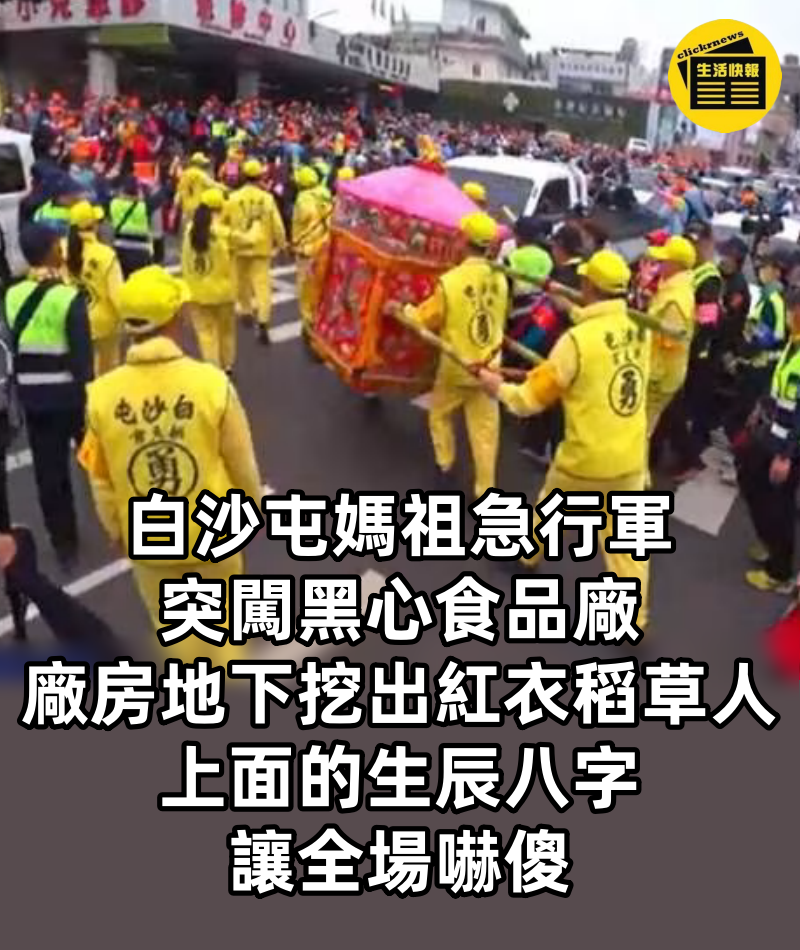 白沙屯媽祖急行軍, 突闖黑心食品廠,廠房地下挖出「紅衣稻草人」 上面的生辰八字讓全場嚇傻