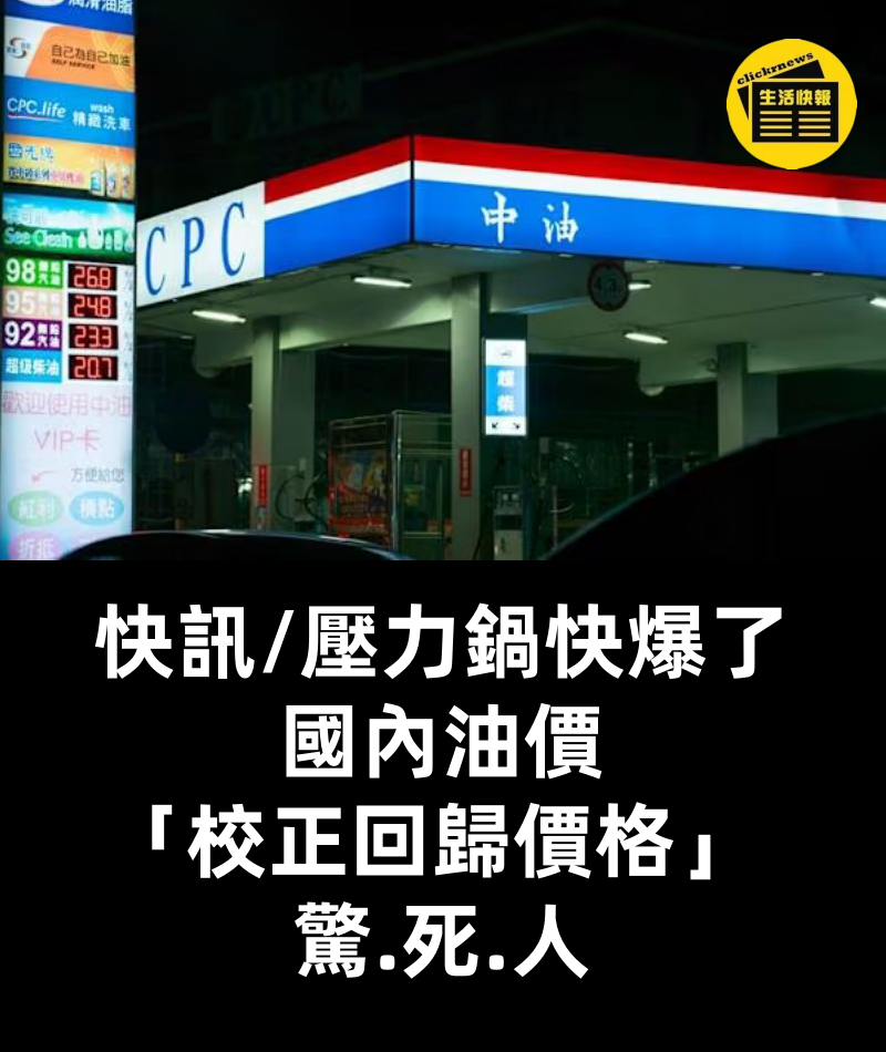 快訊/壓力鍋快爆了! 國內油價「校正回歸價格」 驚.死.人