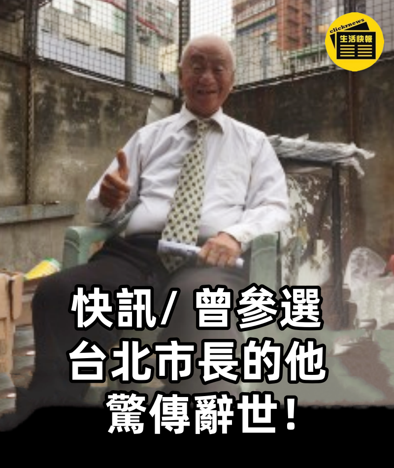 快訊/ 曾參選台北市長的他驚傳辭世!