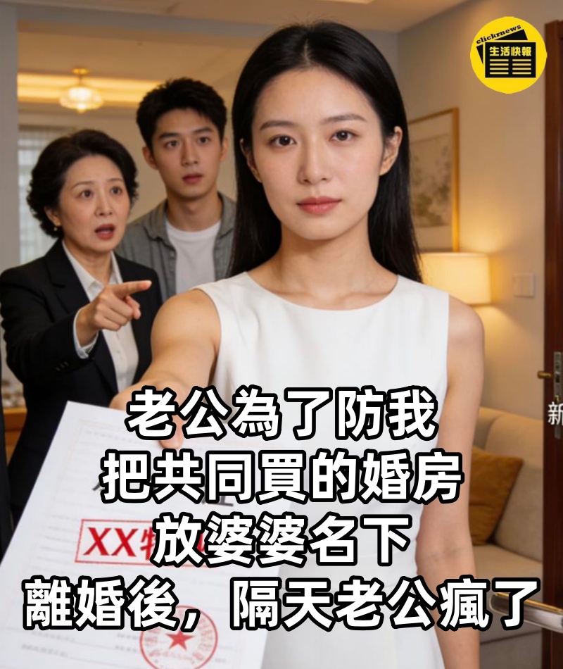 老公為了防我,把共同買的婚房放婆婆名下。離婚後,隔天老公瘋了~