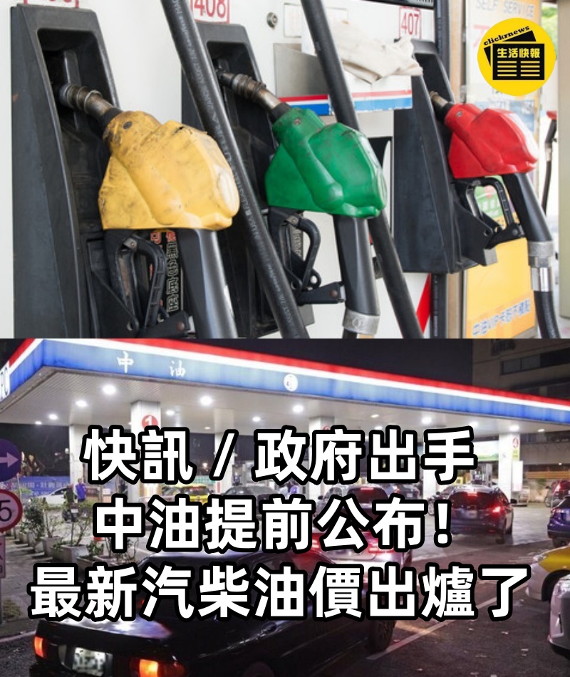 快訊 / 政府出手中油提前公布!?最新汽柴油價出爐了