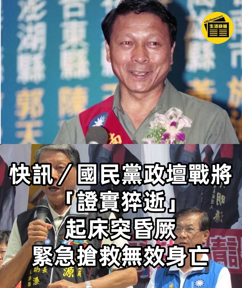 快訊/國民黨政壇戰將「證實猝逝」! 起床突昏厥 緊急搶救無效身亡