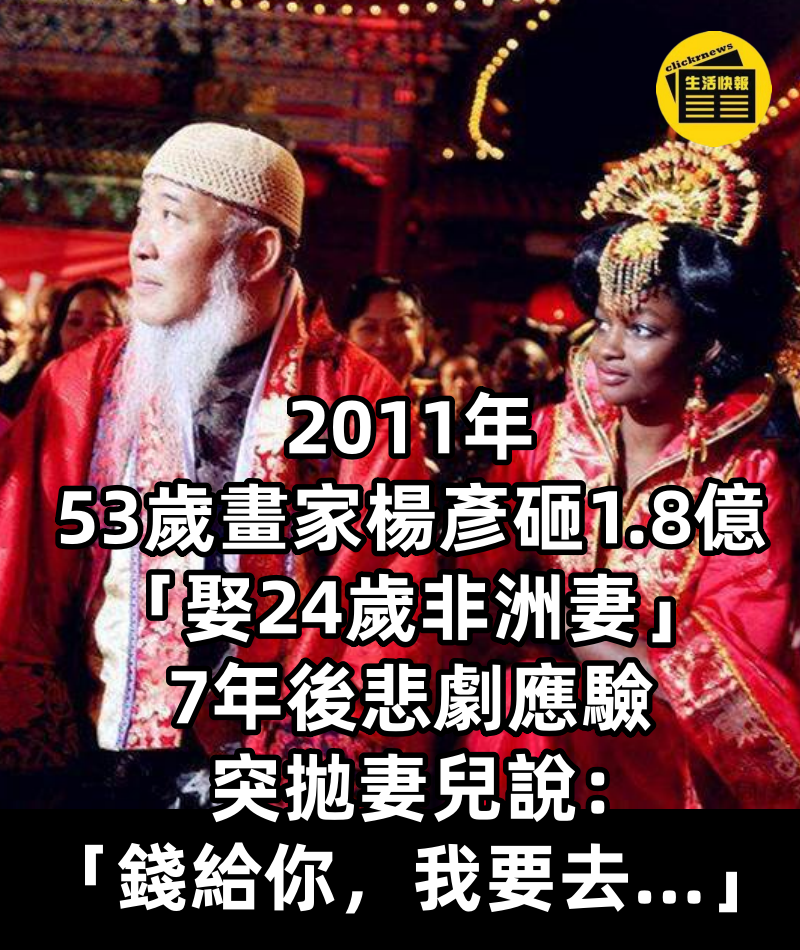 2011年,53歲畫家楊彥砸1.8億「娶24歲非洲妻」7年後悲劇應驗,突拋妻兒說:「錢給你,我要去...」