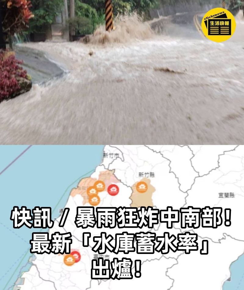 1/4 快訊 / 暴雨狂炸中南部!最新「水庫蓄水率」出爐! 今日中南部大雨狂下,部分地區出現嚴重積水、淹水,然而,根據經濟部水利署資料顯示,大雨未填滿水庫,台中德基水庫蓄水量僅達55%;苗栗鯉魚潭水庫達28%;南部最大的曾文水庫也僅有22.74%。 2/