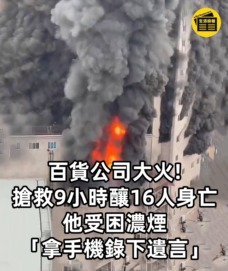 百貨公司大火!!! 搶救9小時「釀16人身亡」...他受困濃煙「拿手機錄下遺言」