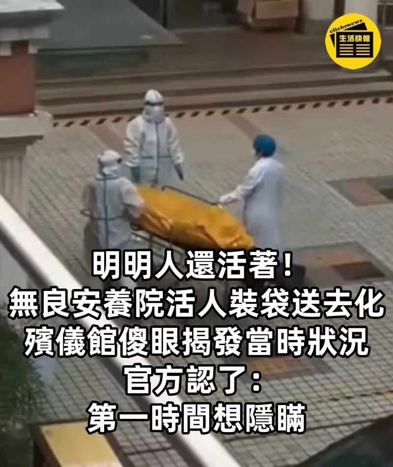 1/5 明明人還活著!無良安養院「活人裝袋」送去化,殯儀館傻眼「揭發當時狀況」官方認了:第一時間想隱瞞。 相信有些朋友都知道,為了往生者能保有經驗最後的身體,在搶救的過程中總會以專門的重症監護包覆, 但先前已出的養老院不僅將另外一位老人的老人塞進屍袋,甚至還準備入院禮堂火化,