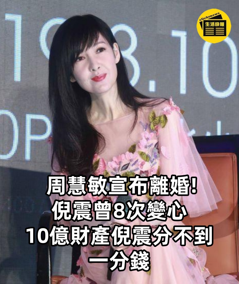 周慧敏宣布離婚!!! 倪震曾8次變心,10億財產倪震分不到一分錢