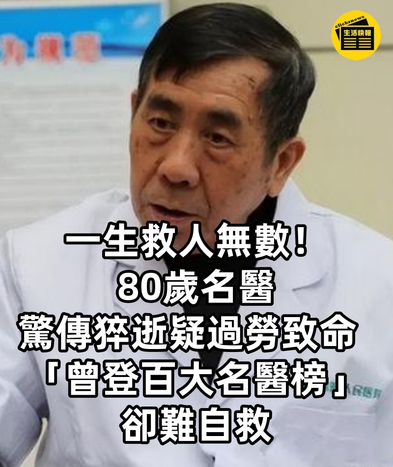 一生救人無數!80歲名醫「驚傳猝逝」疑過勞致命 「曾登百大名醫榜」卻難自救